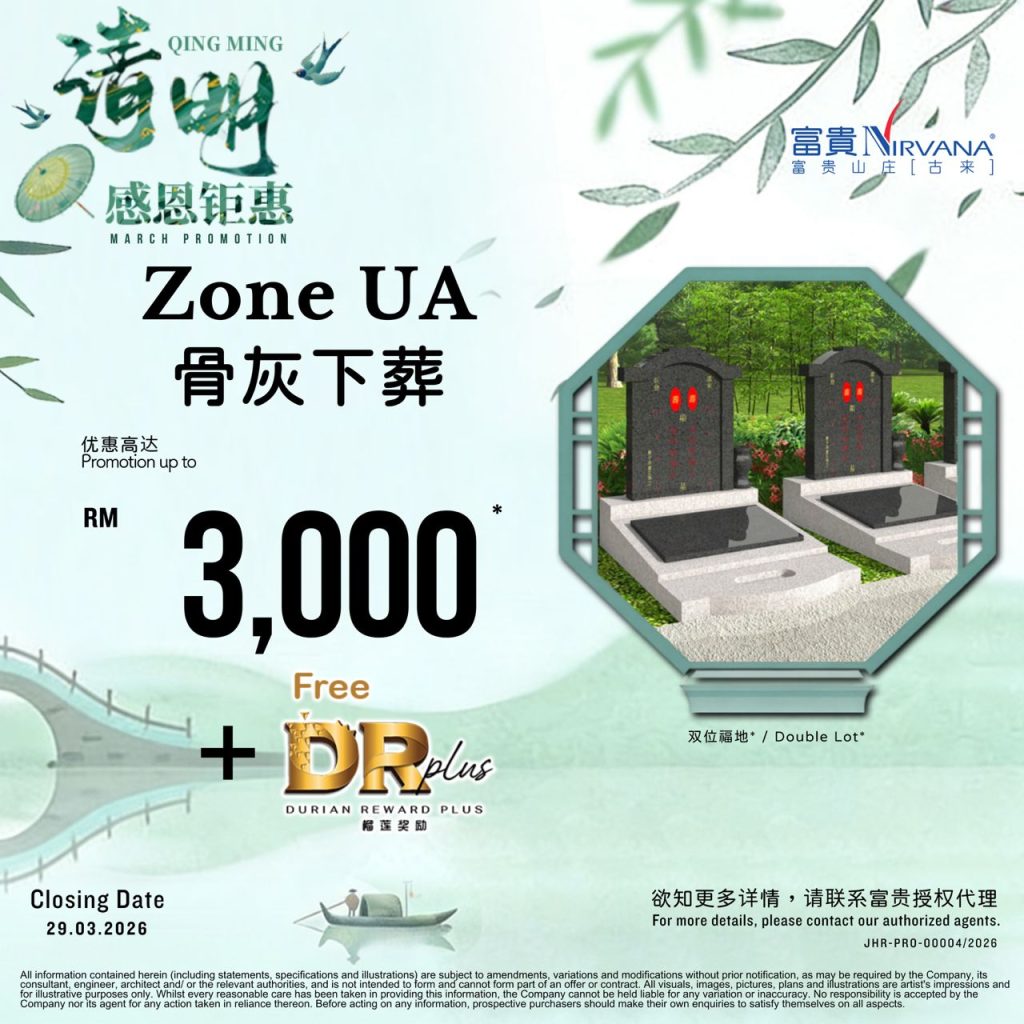 Ash Burial - Zone UA KulaiOur Branch Limited time offer! Ash Burial Plots Discount Up To RM3,000! Monthly Instalment From RM924/month Enjoy Cash Rebate Worth Up To RM40,000 WHATSAPP US