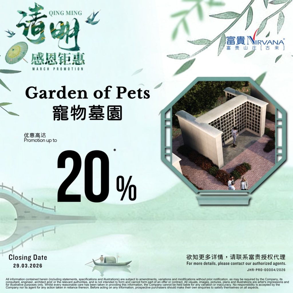 Pet Memorial KulaiOur Branch Limited time offer! Discount Up To 20%! Monthly Instalment From RM358/month View more WHATSAPP US